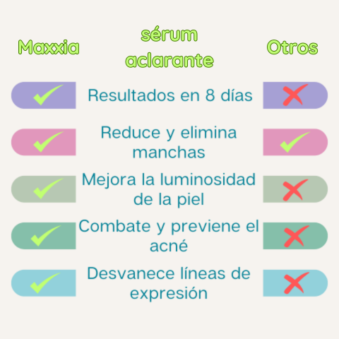 Es posible que en las primeras aplicaciones tengas enrojecimiento, sensación de picazón y por lo general se presente descamación en la piel. Este proceso es normal, debido a que el Sérum Maxxia® regenera las células, eliminando manchas e impurezas desde su primer aplicación